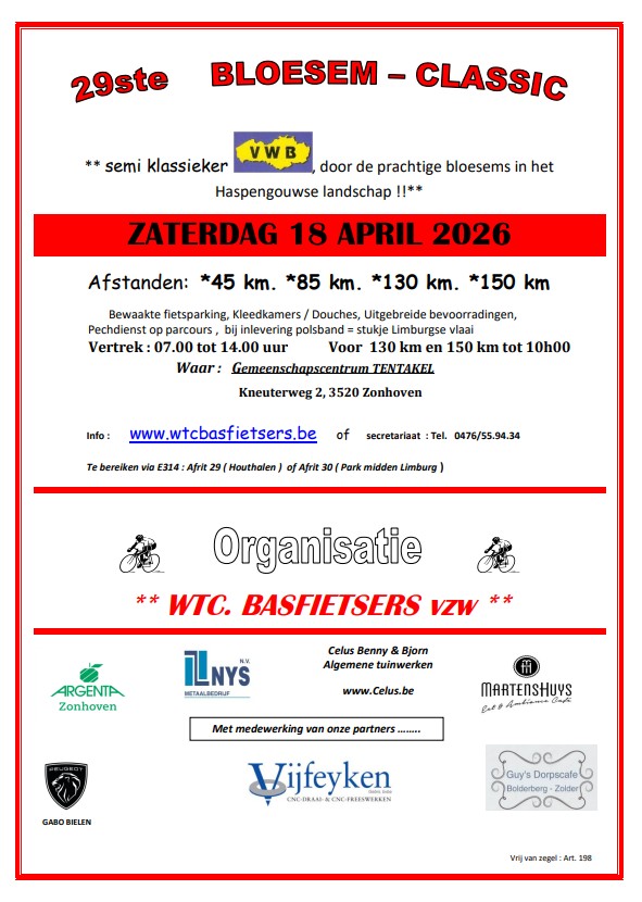 Voorinschrijvingen Bloesem Classic vanaf 1/3/2026.